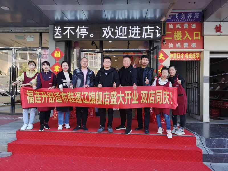 在此,福连升健康休闲中年鞋(原福连升(原福联升)老北京布鞋)全体员工祝贺:福连升健康休闲中年鞋内蒙古通辽新店开业大吉、生意红火、财源广进!诚邀各地有志之士加盟合作,共享辉煌!