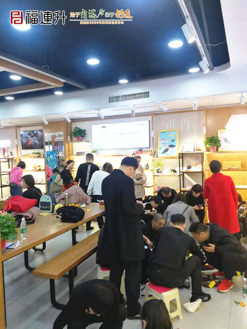 订货会进行的同时,福连升再次重申了我们健康舒适的理念及坚持本心的坚定信念,大会期间福连升公布了新的销售零售全新体系及发展方向,更新升级我们的经销商新零售模式、客户订货技巧讲解,同时讲解了2020福连升春季新品卖点讲解、加盟商订货政策说明等多项精彩内容。