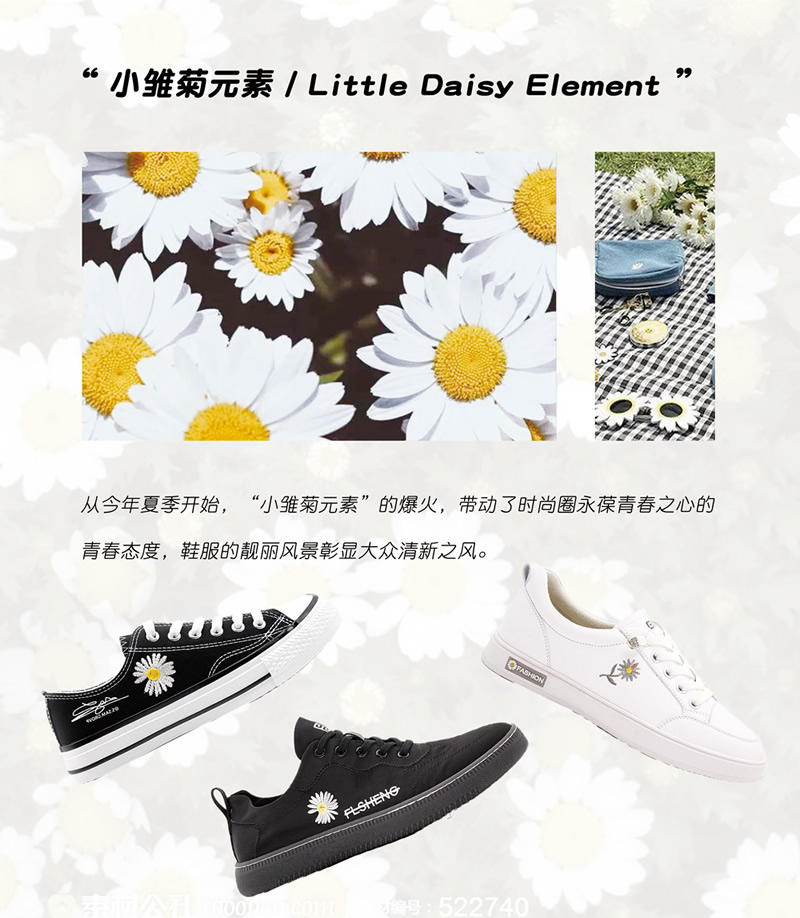 从春夏开始,小雏菊开始占领时尚圈设计风潮,宣示着青春的活力,保持着不老心态,刮起一阵大众清新之风。