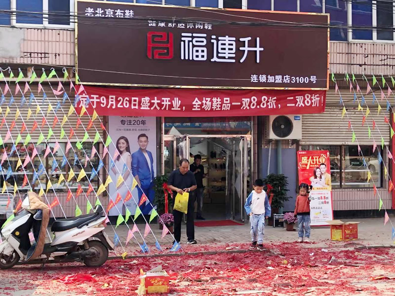 在此,福连升健康舒适休闲鞋(原福连升老北京布鞋)全体员工祝贺:福连升河北沧州河间卧佛堂店开业大吉、生意红火、财源广进!诚邀各地有志之士加盟合作,共享辉煌!