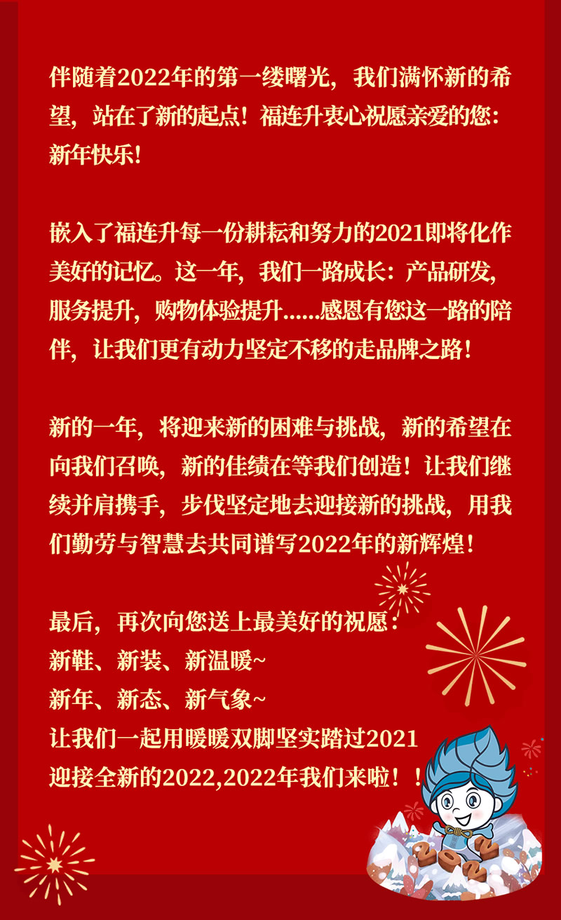 福连升祝全国人民新年快乐!2022不忘初心,坚定品牌之路!