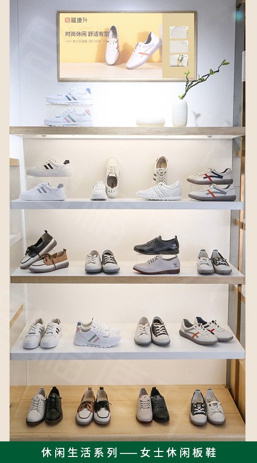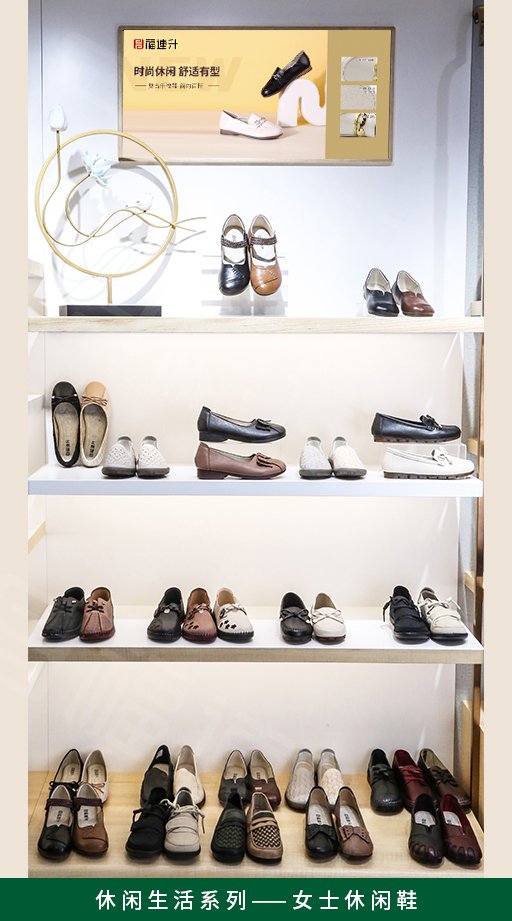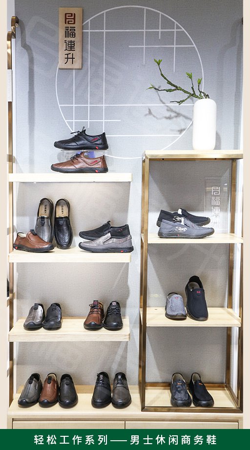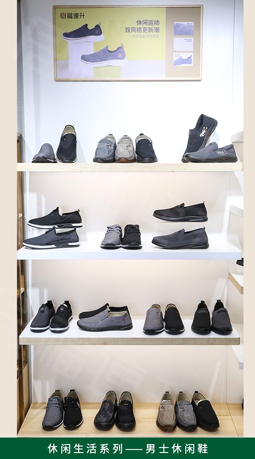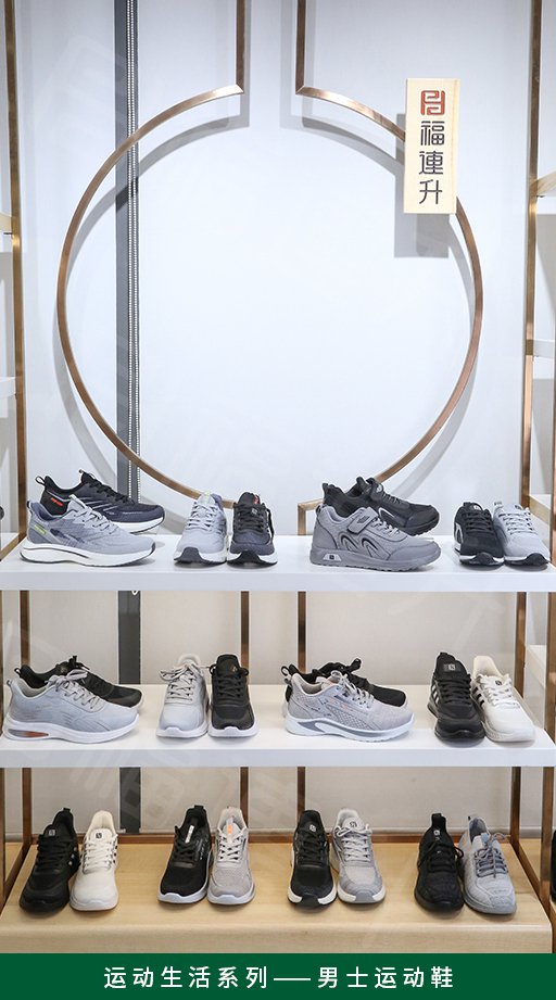 福连升2022春季店面陈列手册,用多个系列实际产品陈列照片详细讲解了福连升休闲鞋专卖店产品的陈列方法,为广大加盟商提供陈列参考。