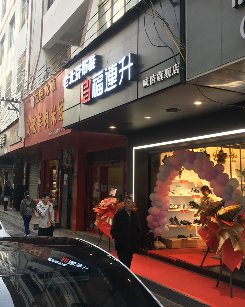 在此,福连升健康舒适休闲鞋(原福联升老北京布鞋)全体员工祝贺:福连升老北京布鞋云南昭通威信县后街店开业大吉、生意红火、财源广进!诚邀各地有志之士加盟合作,共享辉煌!